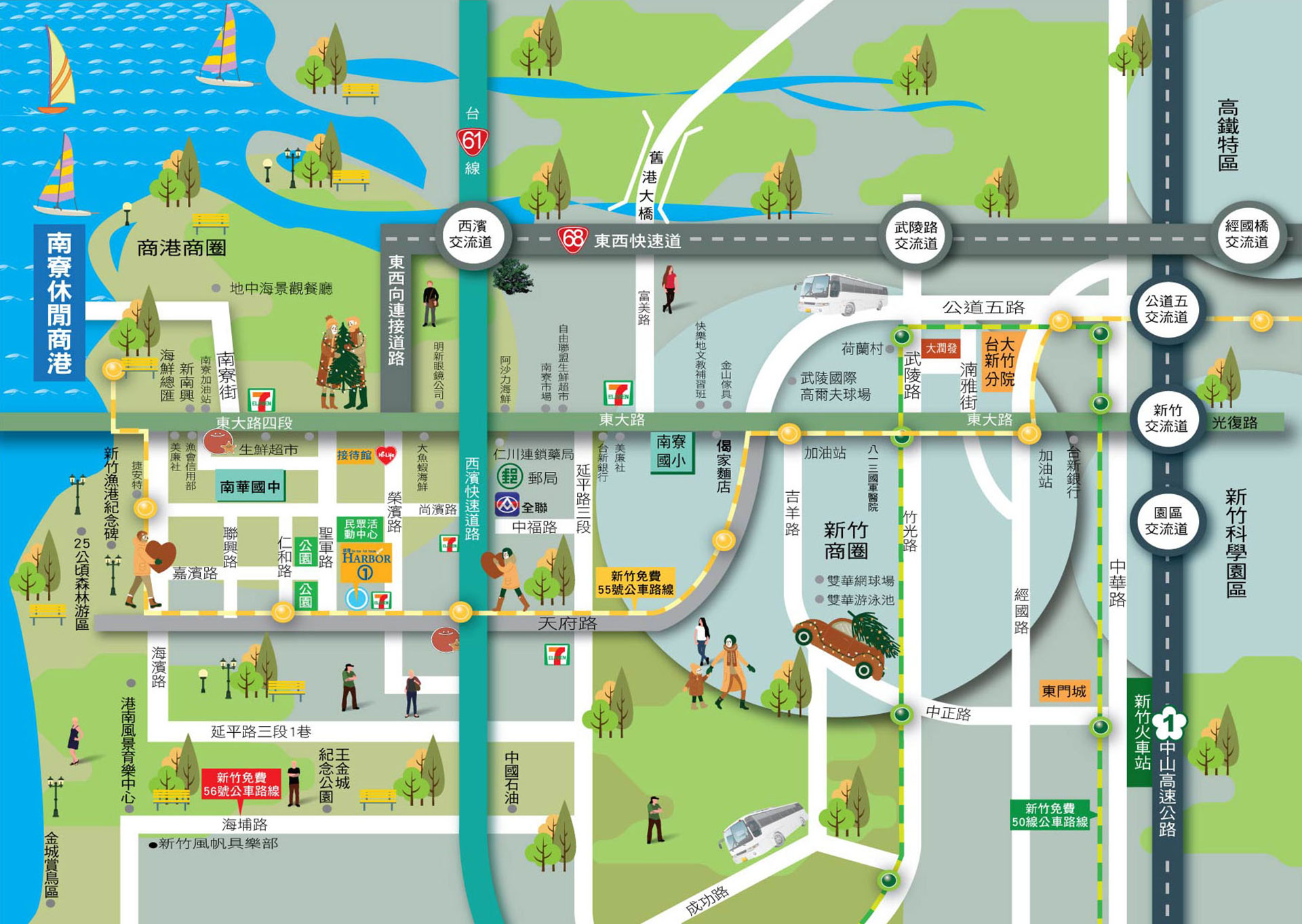 南寮運動公園、台68線延伸工程、南寮大道、整建漁人碼頭計畫等…